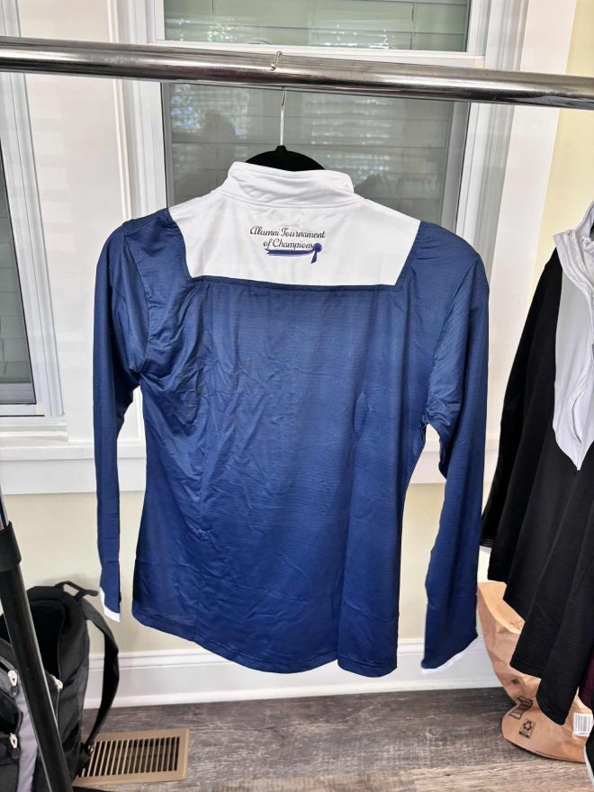 This is a lightweight technical show shirt. Bib is white with zip closure.